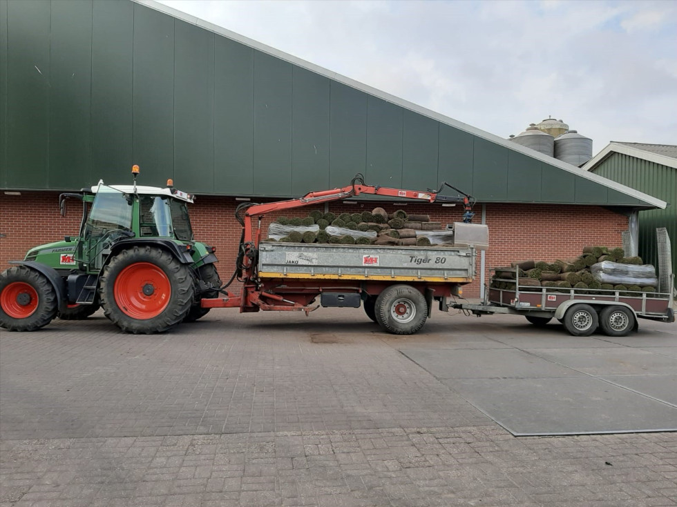 Machinaal grasblokken leggen